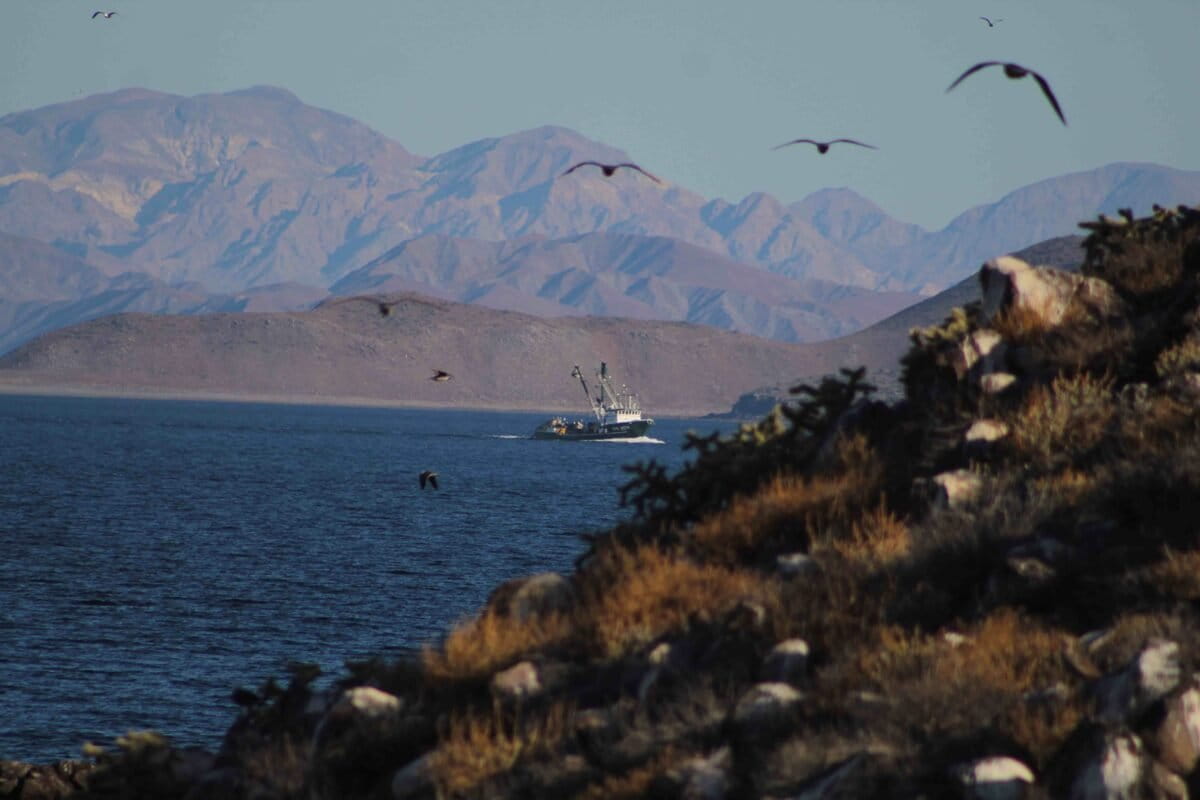 * Imagen principal: Barco sardinero de la flota de Sonora navega frente a Isla Rasa. Foto: E.Velarde