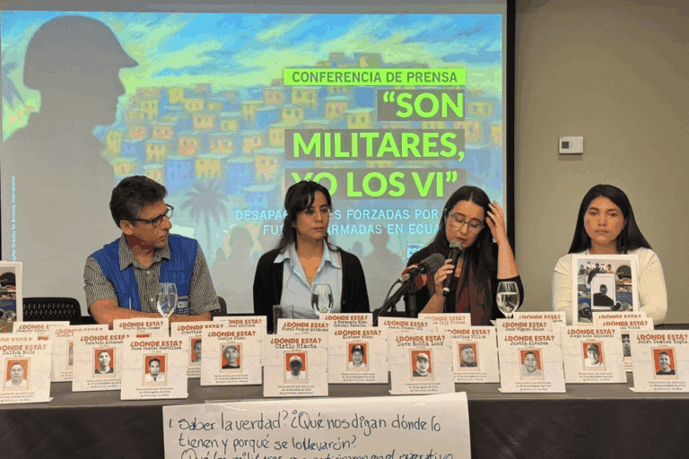 Estas apuestas de mano dura las hemos visto en México, las hemos visto en Colombia y desde Amnistía Internacional lo que nos preocupa es que cuando se pone tanto énfasis en el uso de militares sin ningún tipo de subordinación a autoridades civiles, sin ningún tipo de plan, sin fiscalización, es muy fácil o muy probable que ocurran violaciones de derechos humanos. En México está muy claro el ejemplo de las desapariciones. En Colombia se vio una masividad de violaciones graves a los derechos humanos. Y nosotros desde que empezó el despliegue de militares con Noboa, en enero del año pasado, nos preocupamos ya de que algo pudiera pasar y lo que concluye nuestro informe es que sí ocurrieron violaciones graves con el despliegue de militares, particularmente desapariciones.